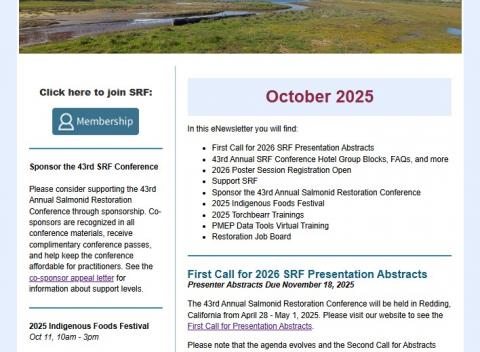 The 43rd Annual Salmonid Restoration Conference will be held in Redding, California from April 28 - May 1, 2025. Please visit our website to see the First Call for Presentation Abstracts.